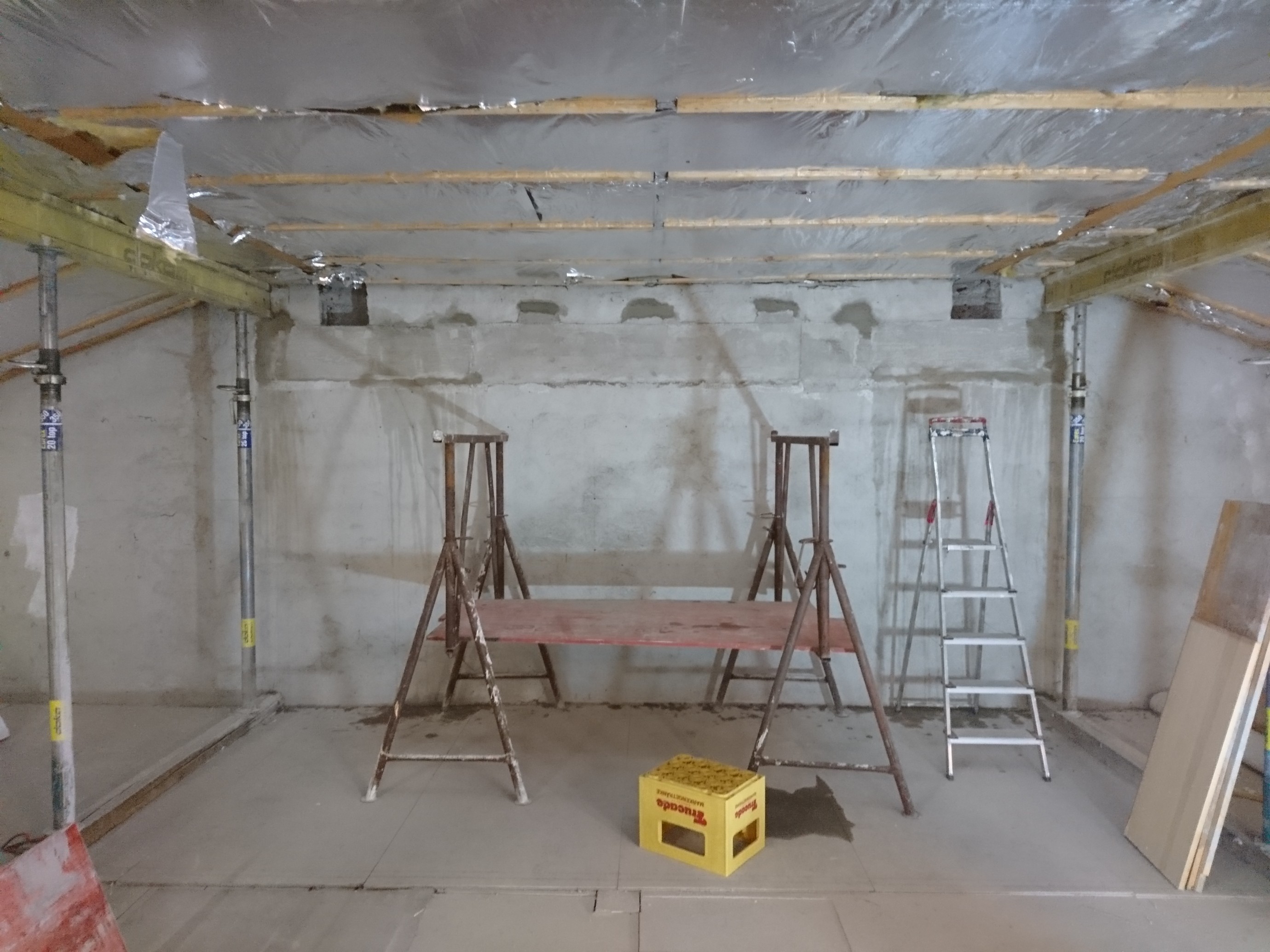 21.07.2018 Ausschallen, Verputzen, Mauern, Verkabelung